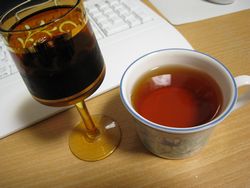 お祝いに葡萄酒とアイスワインティー。同時飲み。(ぇ