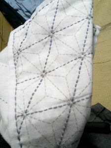 今度は下書きつきのさらしで麻の葉模様をやってます。
